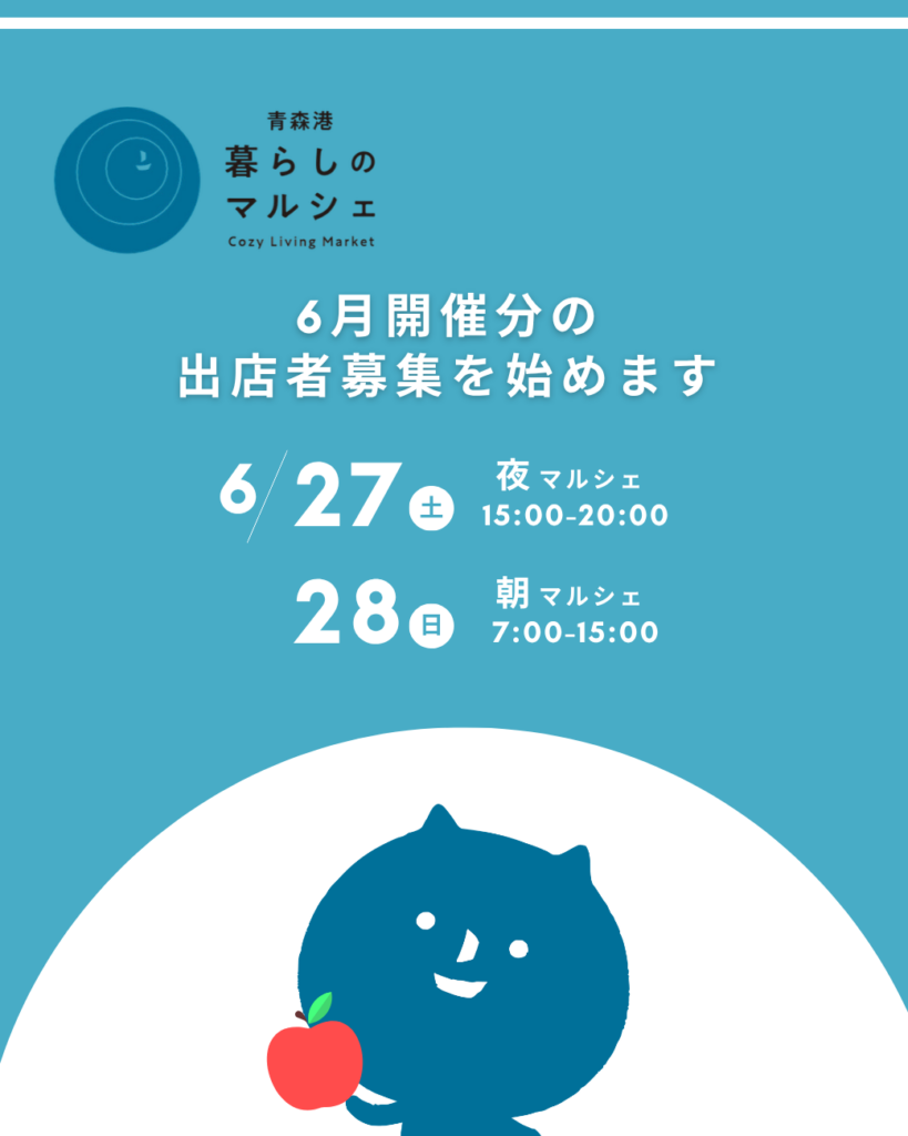 今年の青森港暮らしのマルシェ(くらマル)、6月から10月まで月1で開催します。現在6月27日(土)・6月28日(日)開催分の出店者を募集中です。 WEBサイト内「出店要項… -