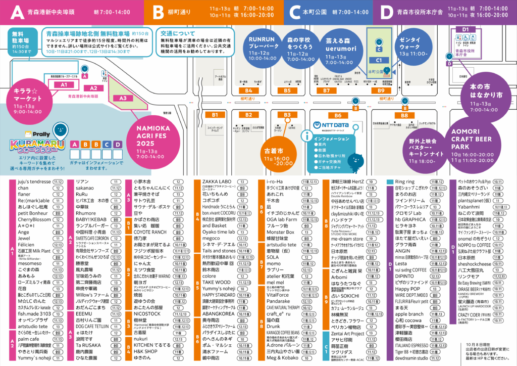 地元青森の新鮮な野菜や果物、海の幸からお惣菜など御当地のおいしいもの、手作りの手芸・クラフト工芸品、屋台やキッチンカーグルメからアート・演劇・ダンス、ライブパフォーマンスまで、自由で多様性のあるマルシェを目指しています。皆様のご応募に感謝申し上げます。